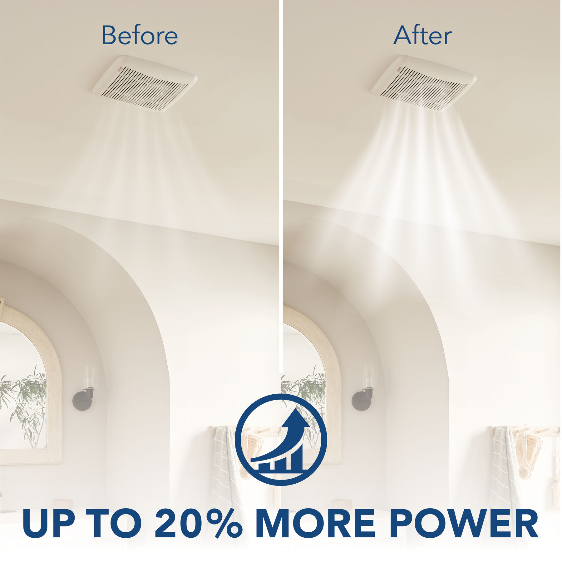 - Up to 20% More Power: 60 CFM - sufficient ventilation to remove odors and moisture from your bathroom