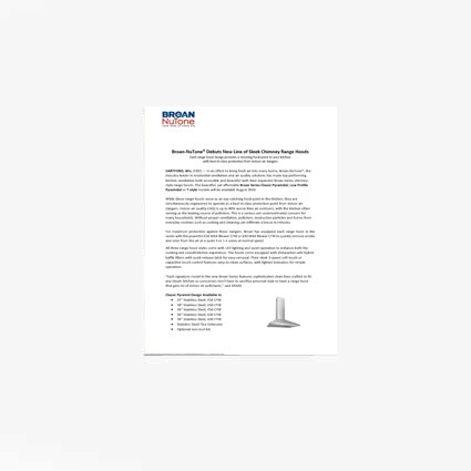 Broan-NuTone® Debuts New Line of Sleek Chimney Range Hoods