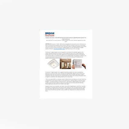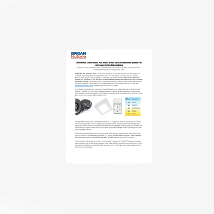 Smell Better, Sound Better, Feel Better: Broan® Launches Bluetooth Speaker Fan with Wake-Up Simulation Lighting