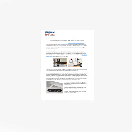 Need a Breath of Fresh Air? Try the Kitchen: Broan-NuTone® Expands Broan Elite Line