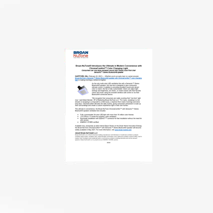 Broan-NuTone® Introduces the Ultimate in Modern Convenience with ChromaComfort™ Color Changing Light