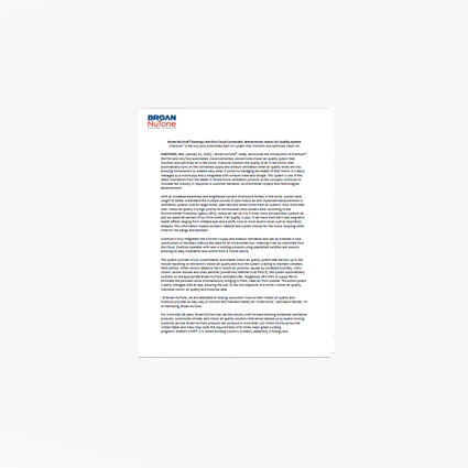 Broan-NuTone Develops the First Cloud-Connected, Whole-Home Indoor Air Quality System