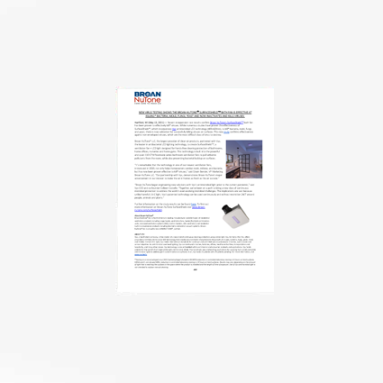 Broan-NuTone® Introduces First Air Purifier Product to Portfolio of Indoor Air Quality Solutions