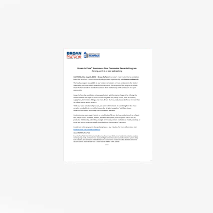 Broan-NuTone Releases Lineup of Compliant Energy-Efficient Solutions for 2020 Builders