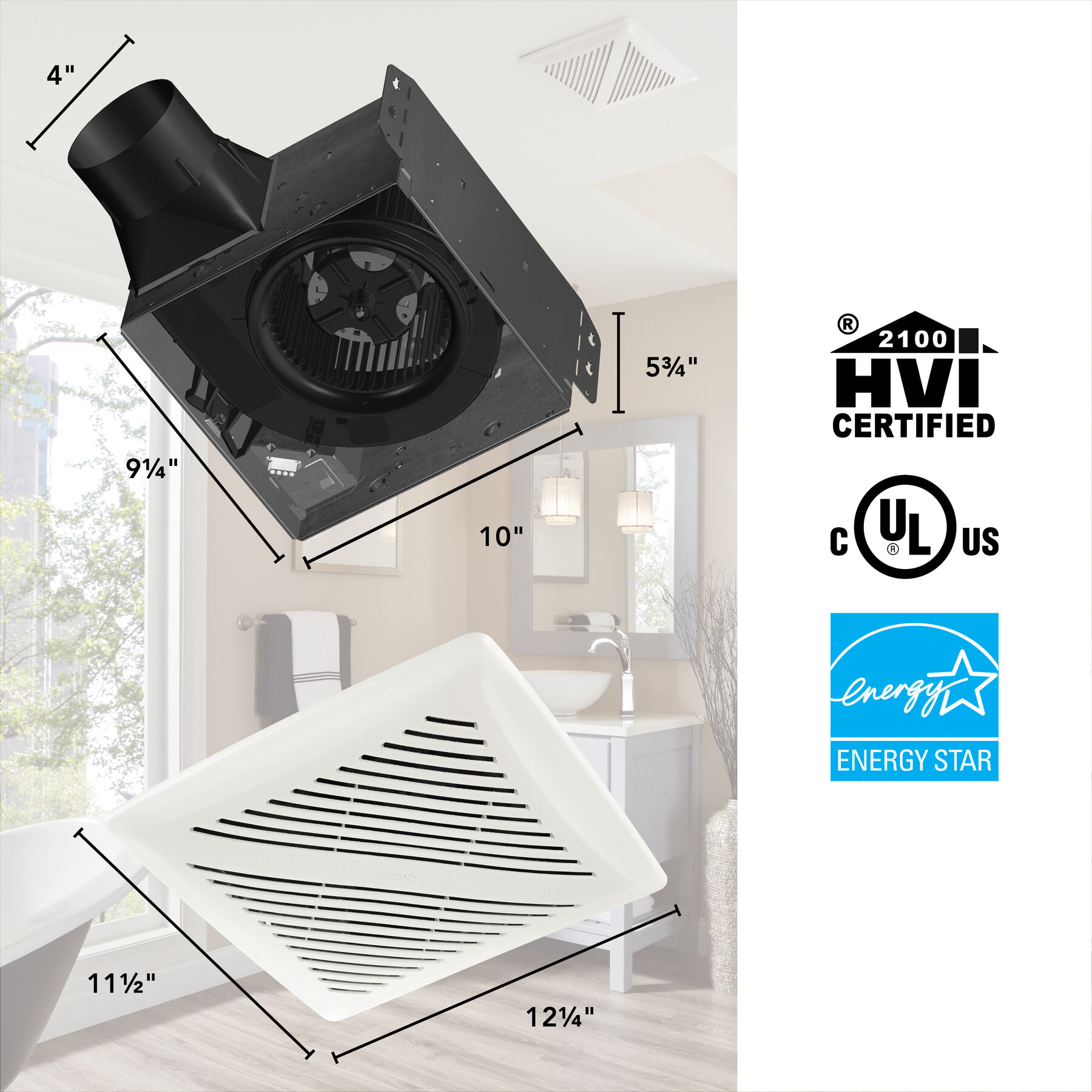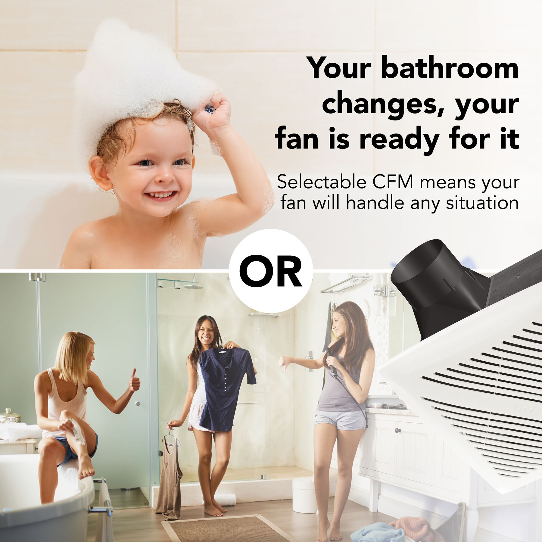 - FlexAir Selectable: Choose between 80 or 110 CFM to match your bathroom’s airflow needs with a simple flip of the switch.