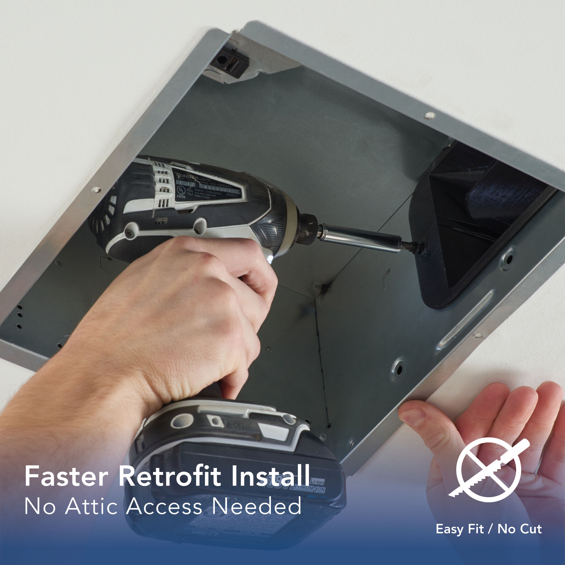 - No Attic Access Installation: Room-side install makes it easy to retrofit without needing access to the attic.